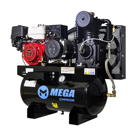 MEGA MP-75120DPBA Industrial Duplex Electric Air Compressor 120 gal Horizontal Tank
